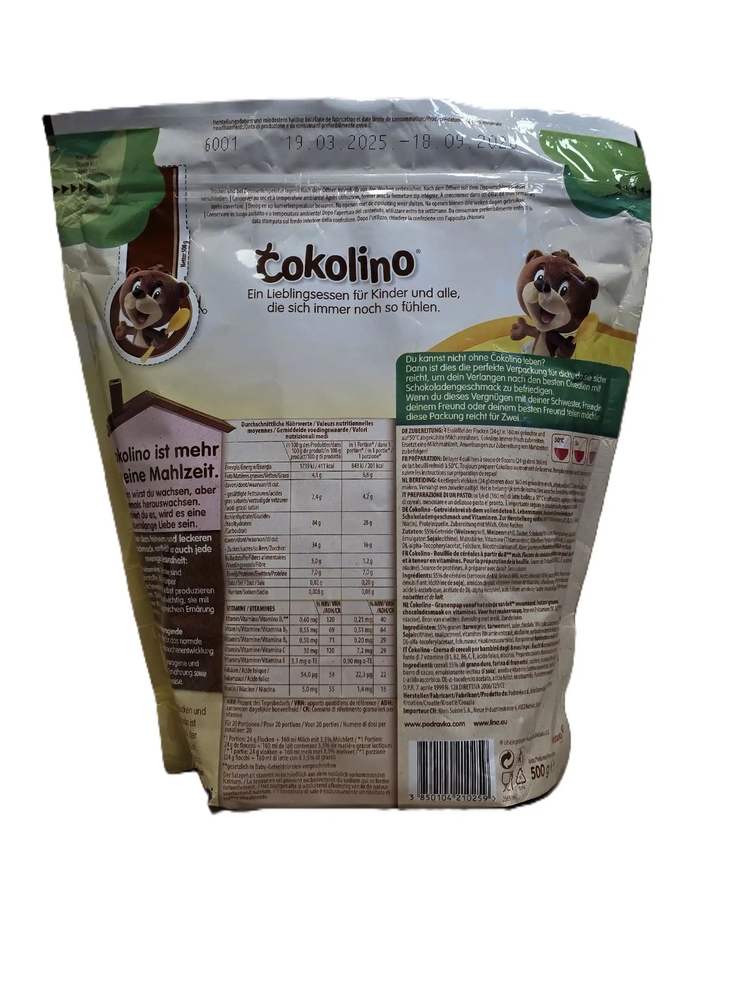 Lino Čokolino – Schokoladiger Getreidebrei mit wertvollen Vitaminen und Mineralstoffen. Perfekt für Kinder und Erwachsene. Inhalt: 500g.