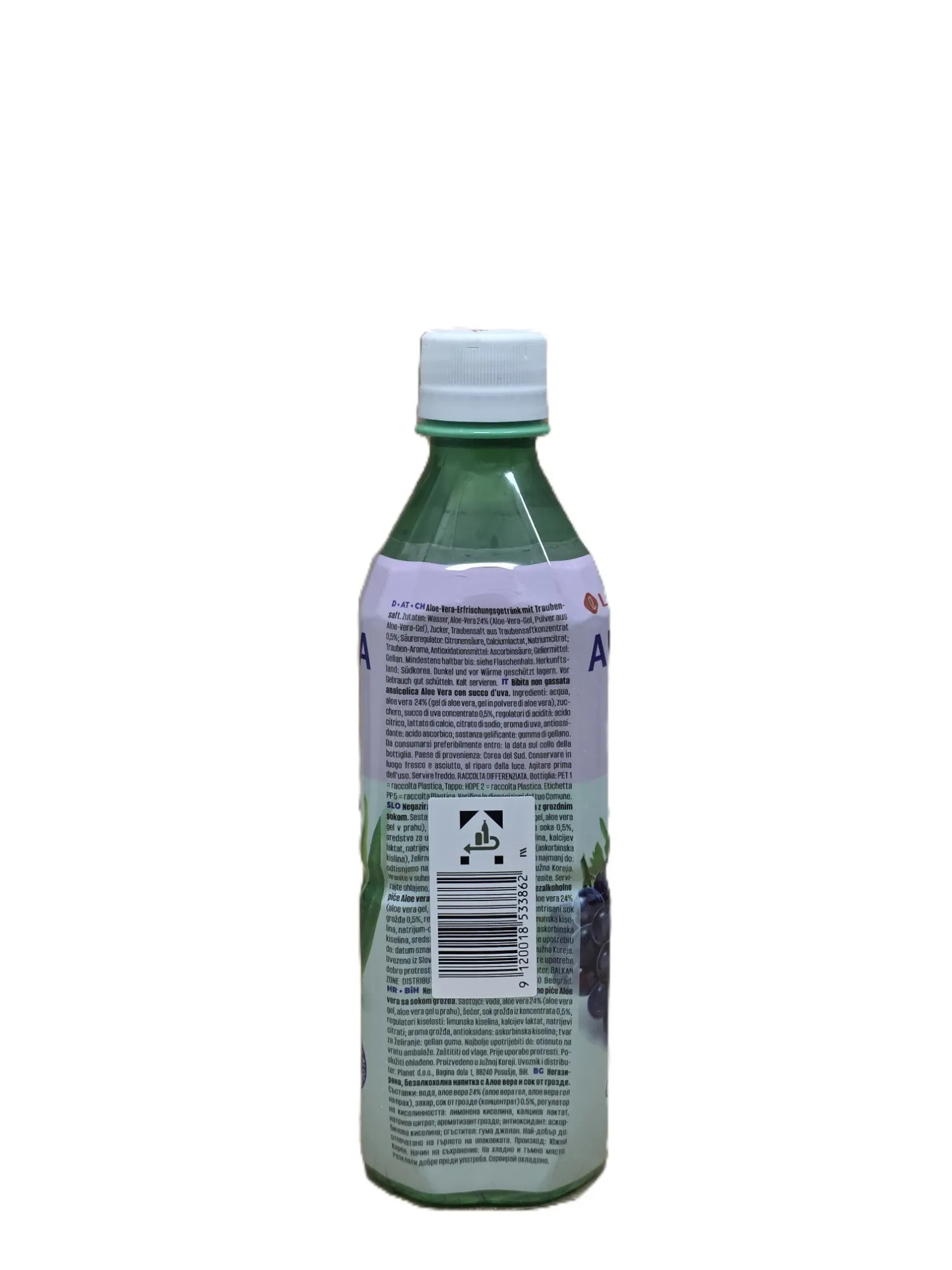 Eine köstliche Kombination aus Aloe Vera und süßem Traubengeschmack. Enthält echte Aloe-Stücke, 0,5L Flasche.