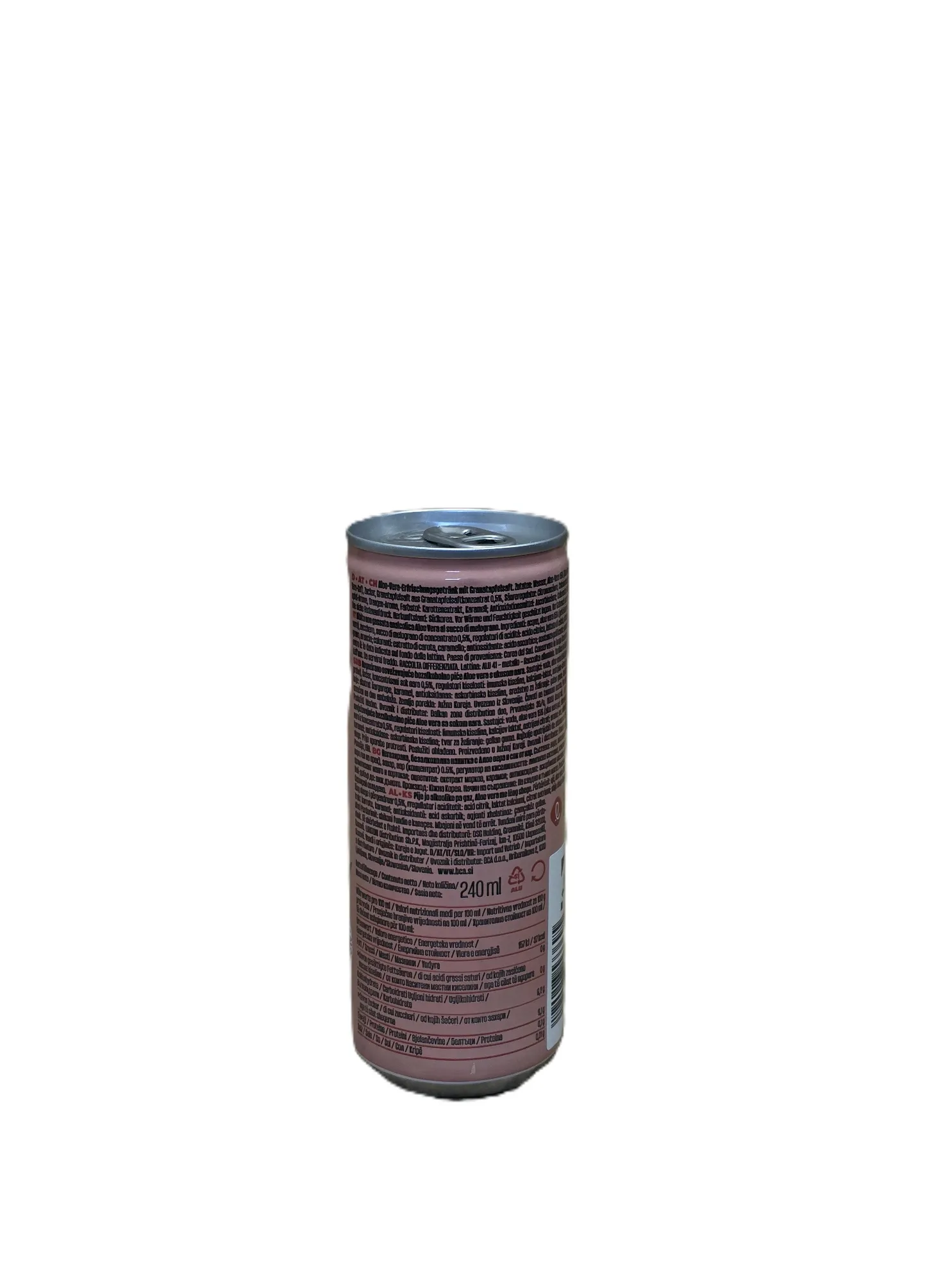 Erfrischende 240ml Dose mit der Kombination aus Aloe Vera und Granatapfelextrakt.
