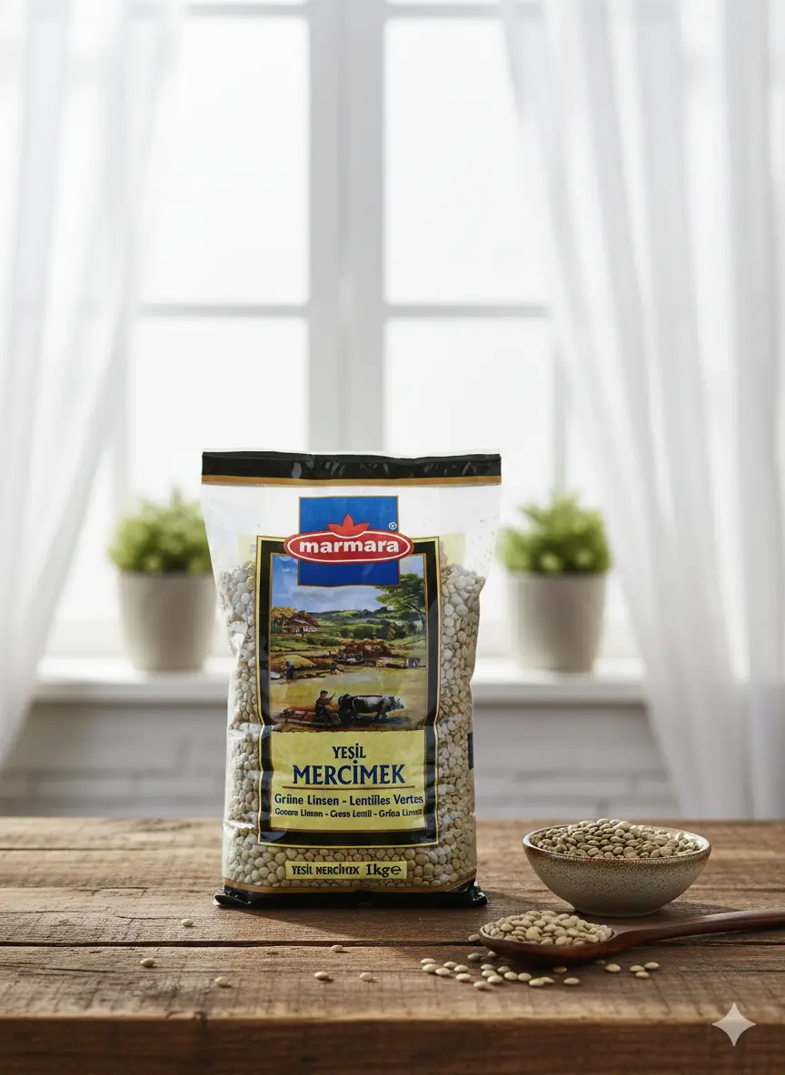 Grüne Linsen (Yeşil Mercimek), 1000g (1 kg) Packung.