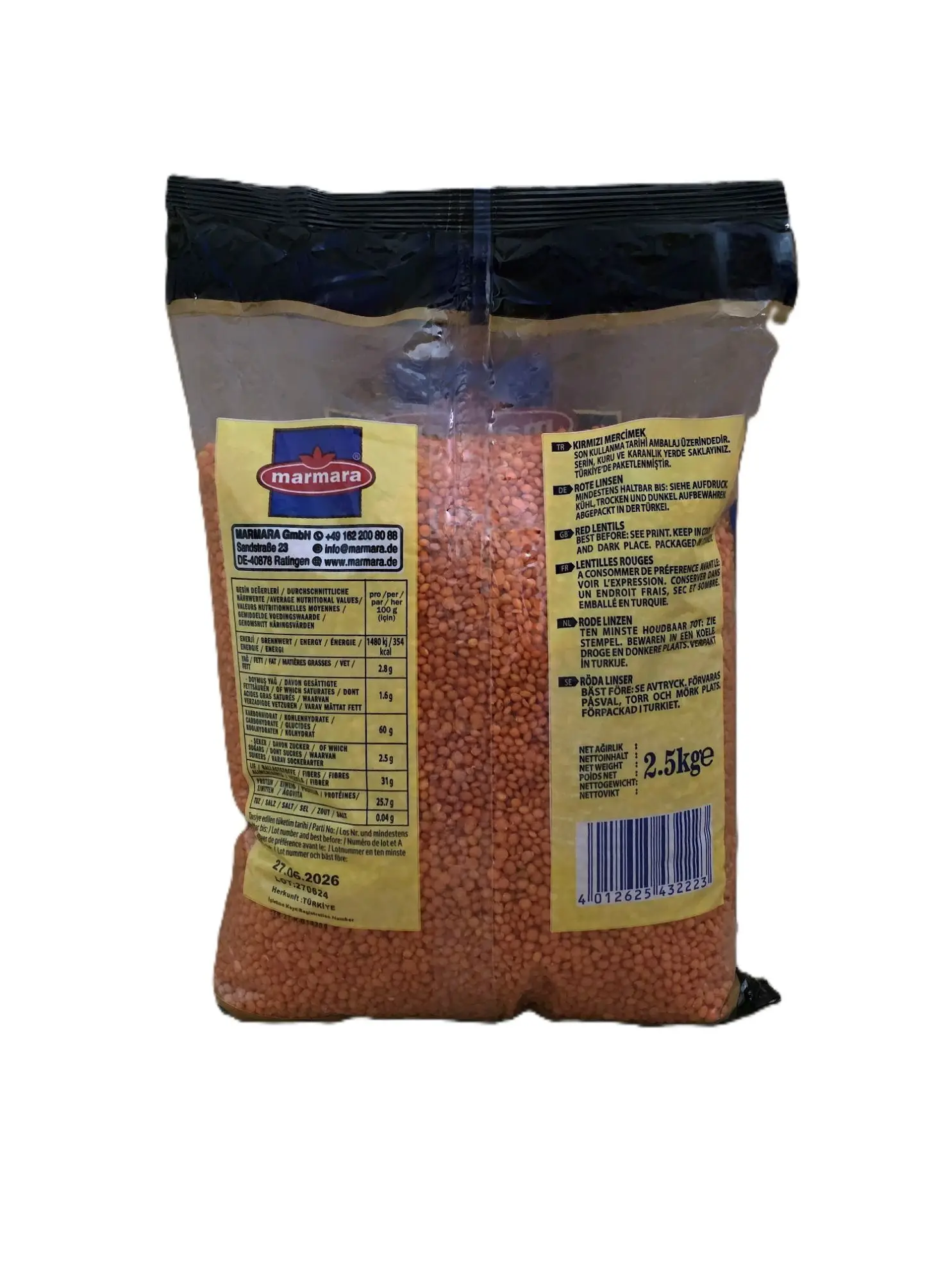 Rote Linsen (Kırmızı Mercimek), 2500g (2.5 kg) Großpackung, geschält ve hızlı pişen.