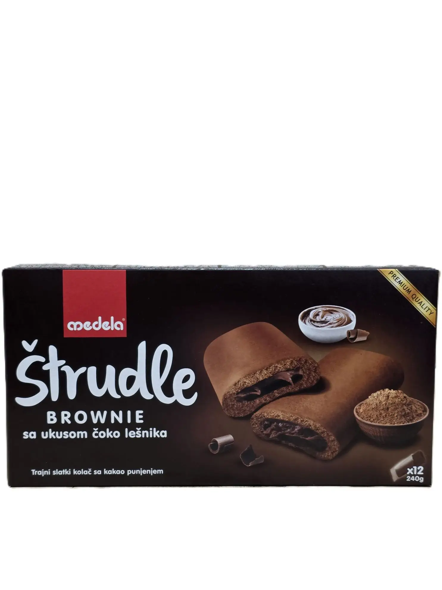 Weiches Gebäck mit einer reichhaltigen Brownie-Füllung (Schoko-Haselnuss-Geschmack). Enthält 12 Stück pro Packung.