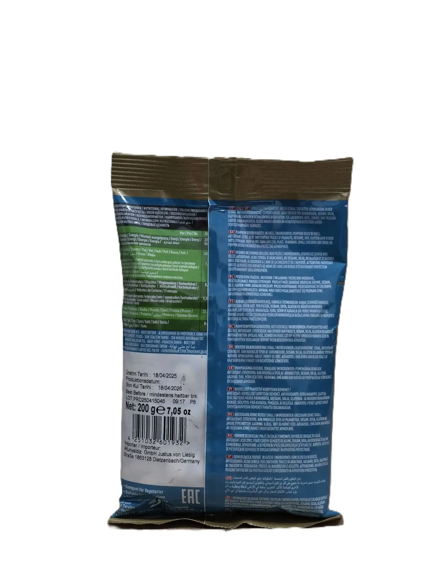 Geröstete und ungesalzene Kürbiskerne aus Nevşehir, 200 Gramm Packung.