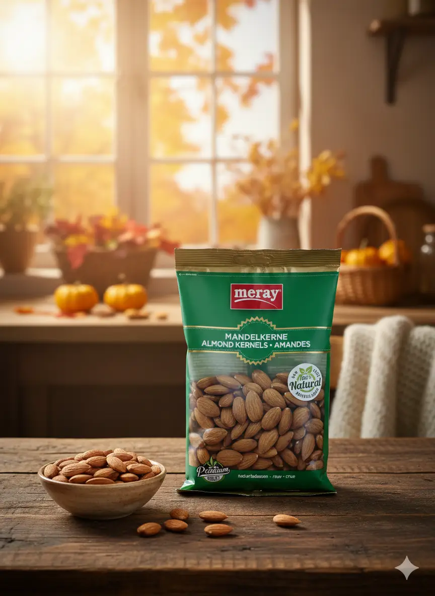Doğal (raw) ve soyulmuş Mandelkerne, 225 Gramm Packung. (%100 Natural)