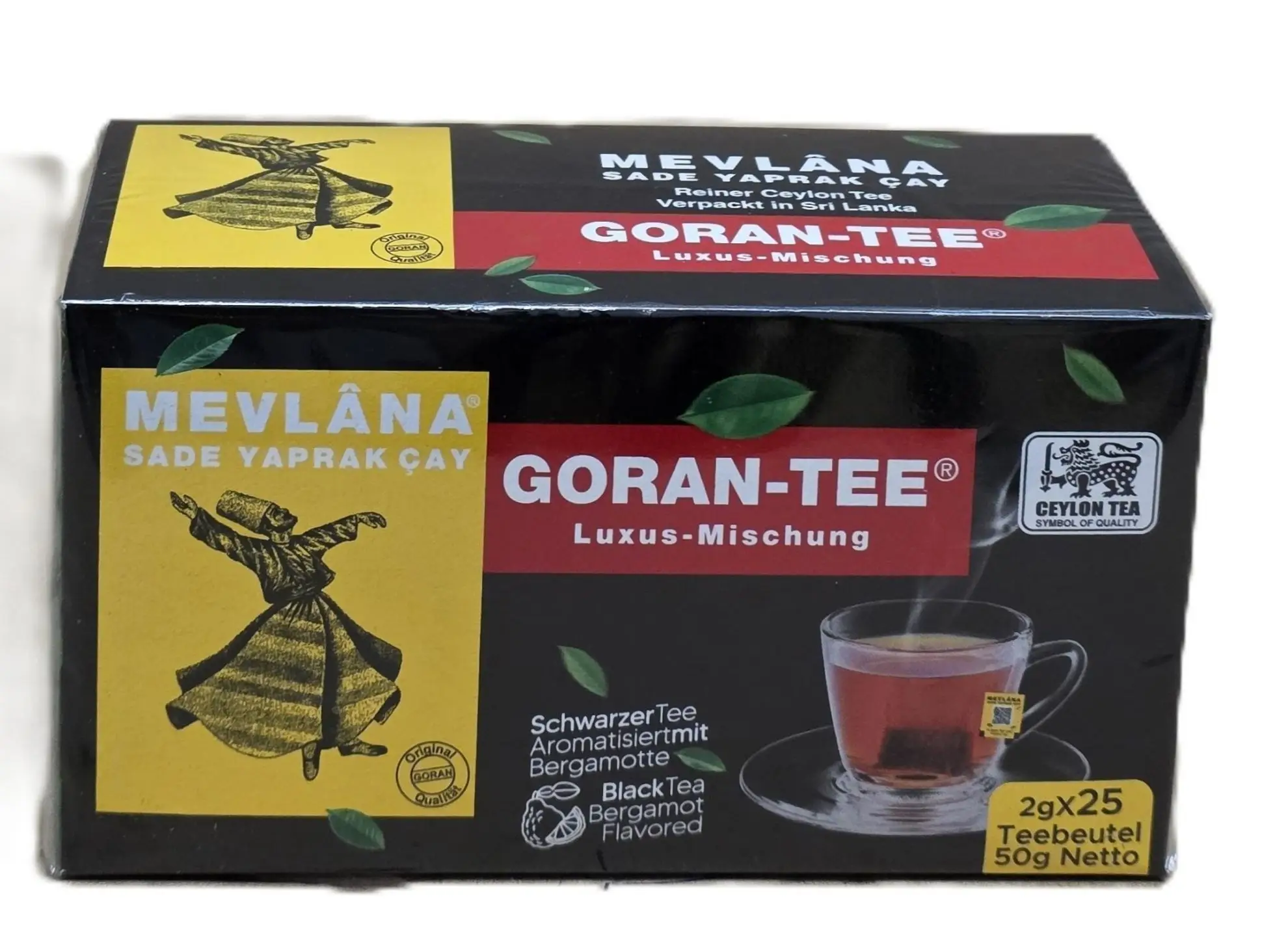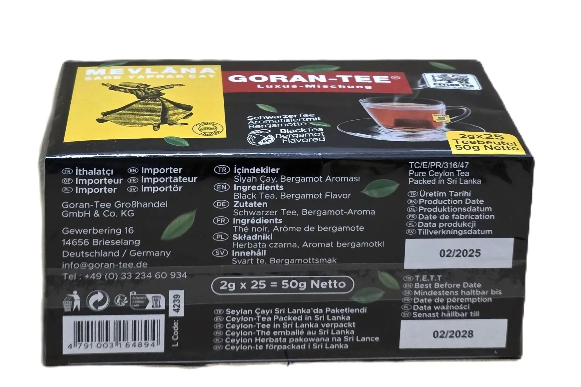 Mevlana Sade Yaprak Çay Goran-Tee 50g – Aromatisierter Schwarzer Tee mit feinem Bergamotte-Aroma. Eine Luxus-Mischung nach traditioneller Art. Inhalt: 50 g (2 g x 25 Teebeutel).