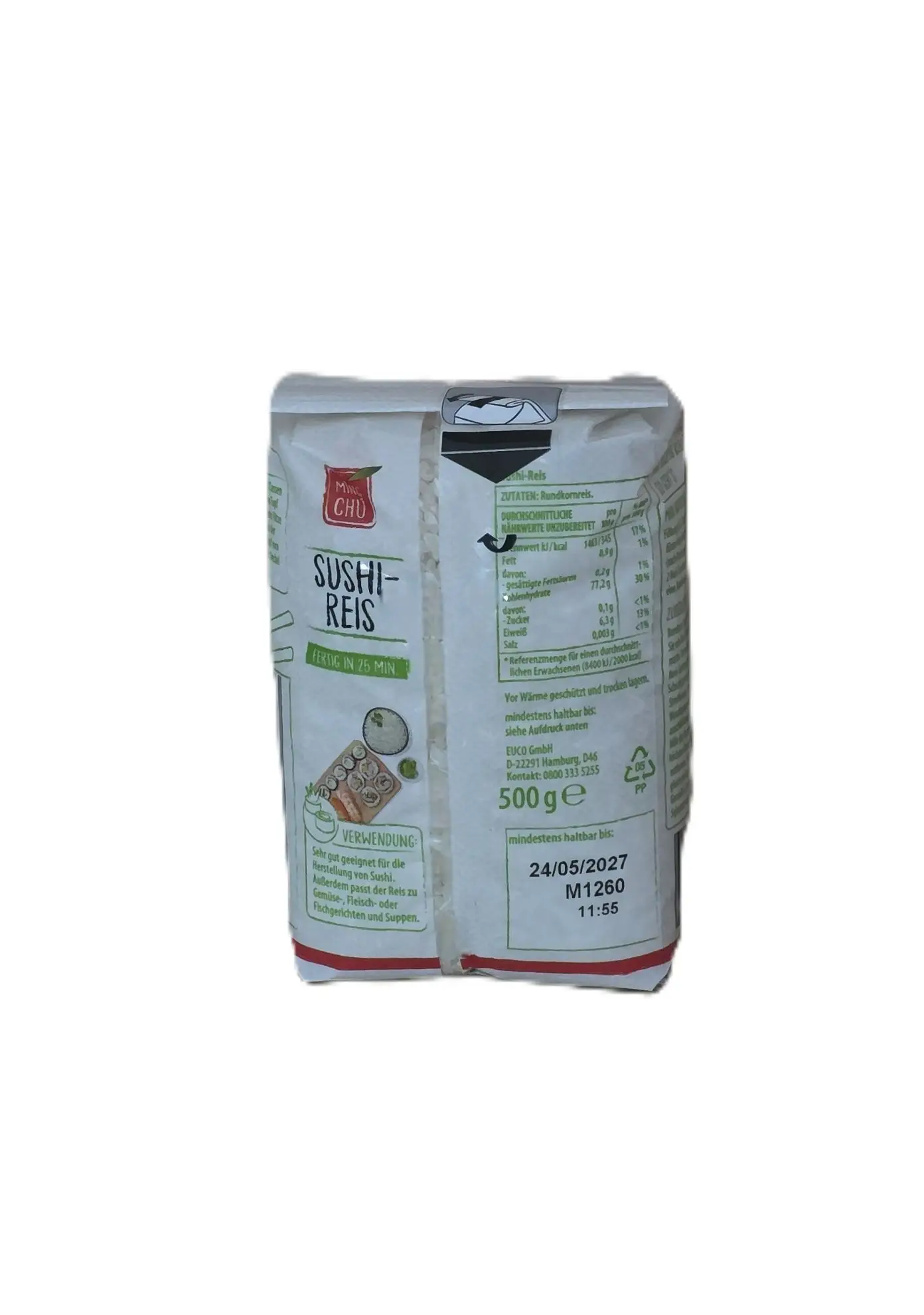 Ming Chu Sushi Reis 500 g – Rundkornreis, perfekt für die Zubereitung von Sushi, Reisgerichten und Suppen.