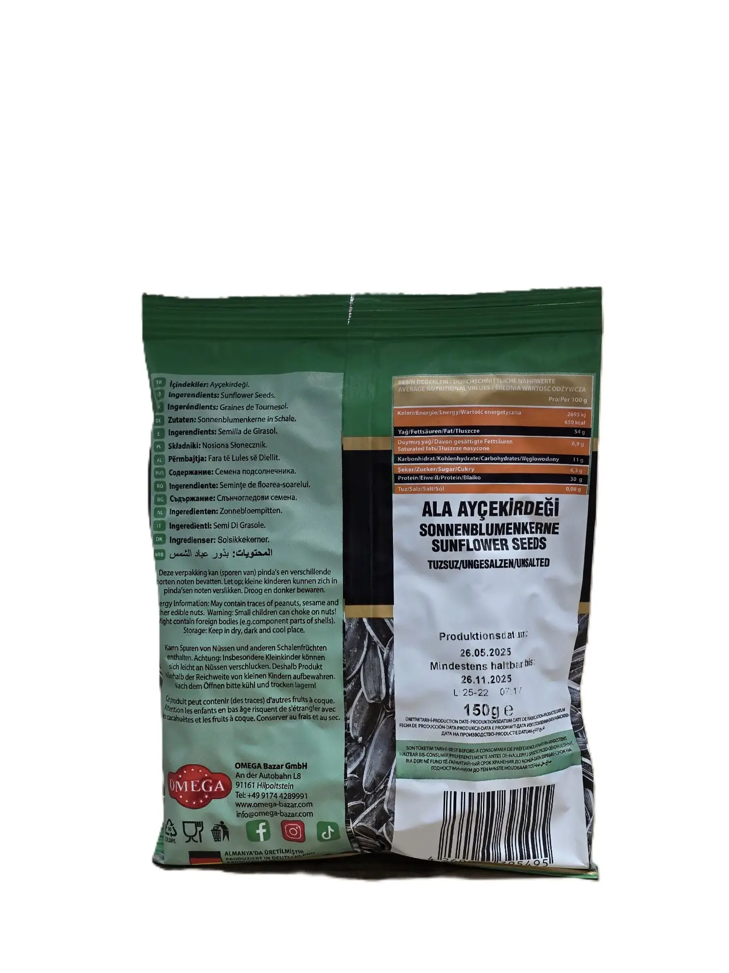 Geröstete ve tuzsuz (ungesalzen) Sonnenblumenkerne, 150 Gramm Packung.