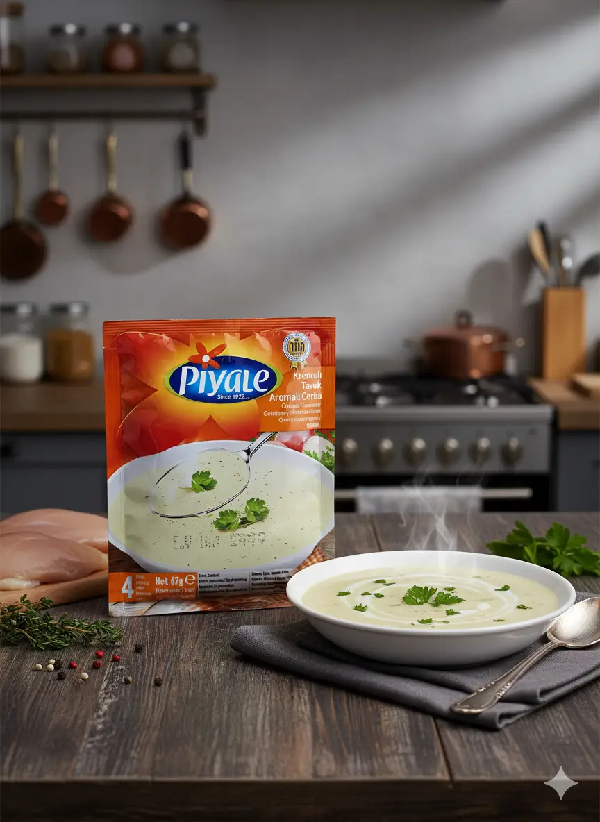 Piyale Cremige Hühnersuppe – Feine Suppe mit cremigem Hühnergeschmack. Einfach zuzubereiten und ideal für kalte Tage. Nettogewicht: 62g. Kategorie: Lebensmittel.