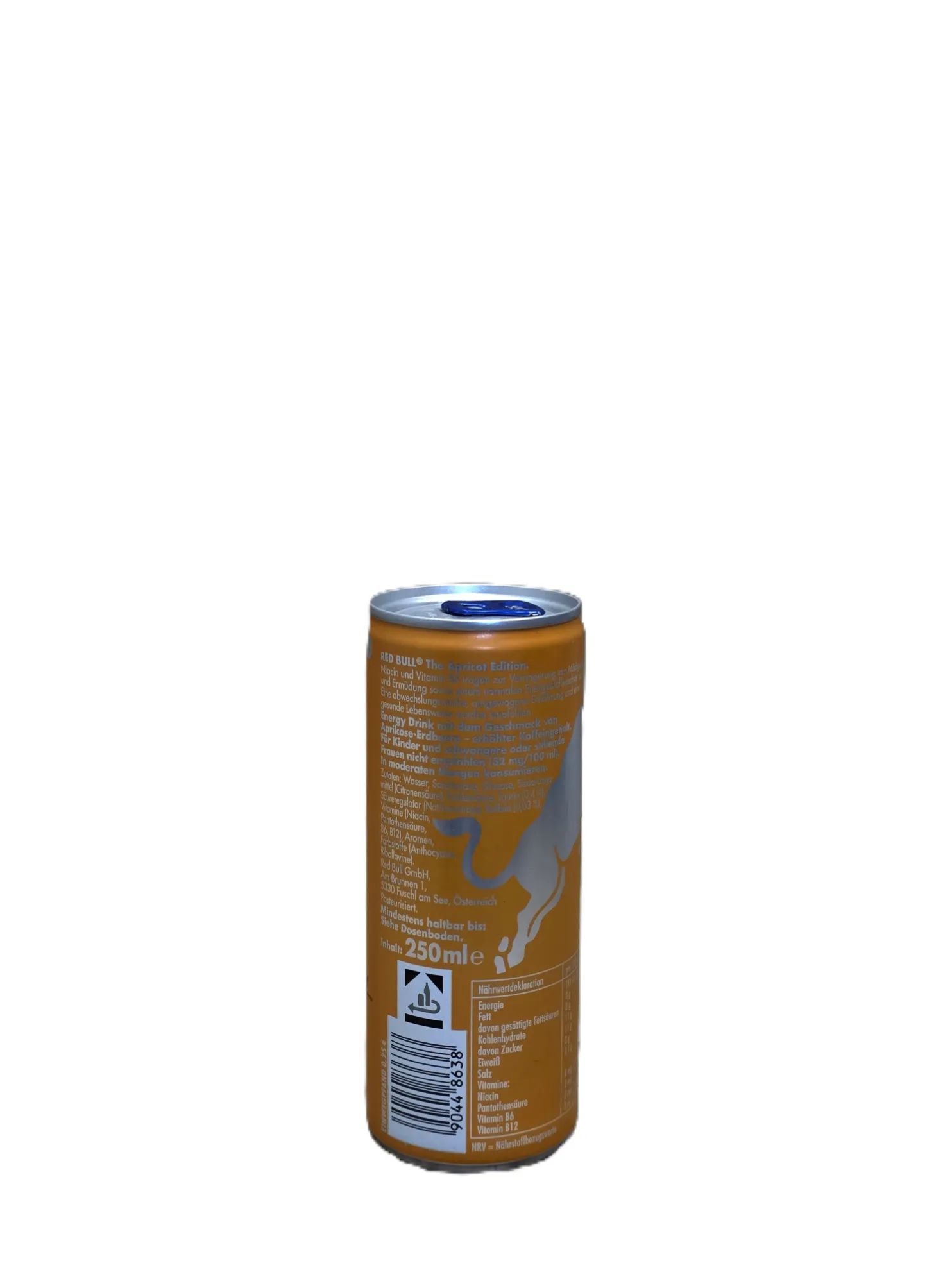 Zutaten: Wasser, Zucker, Taurin, Koffein, Aprikose-Erdbeere-Aroma.