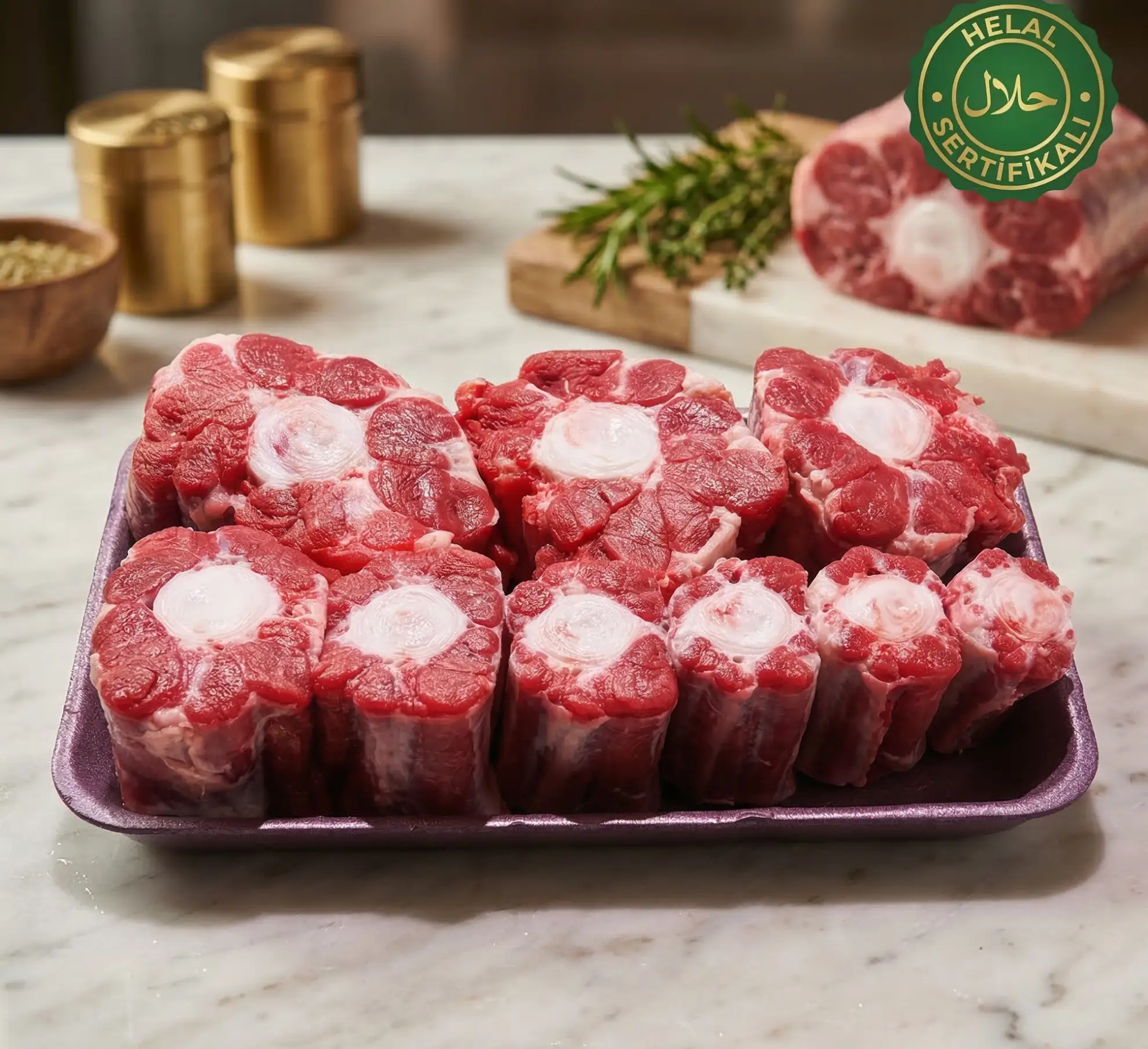 Das ideale Teilstück für kräftige Suppen und Schmorgerichte. Besonders aromatisch, reich an Kollagen und 100% Halal.