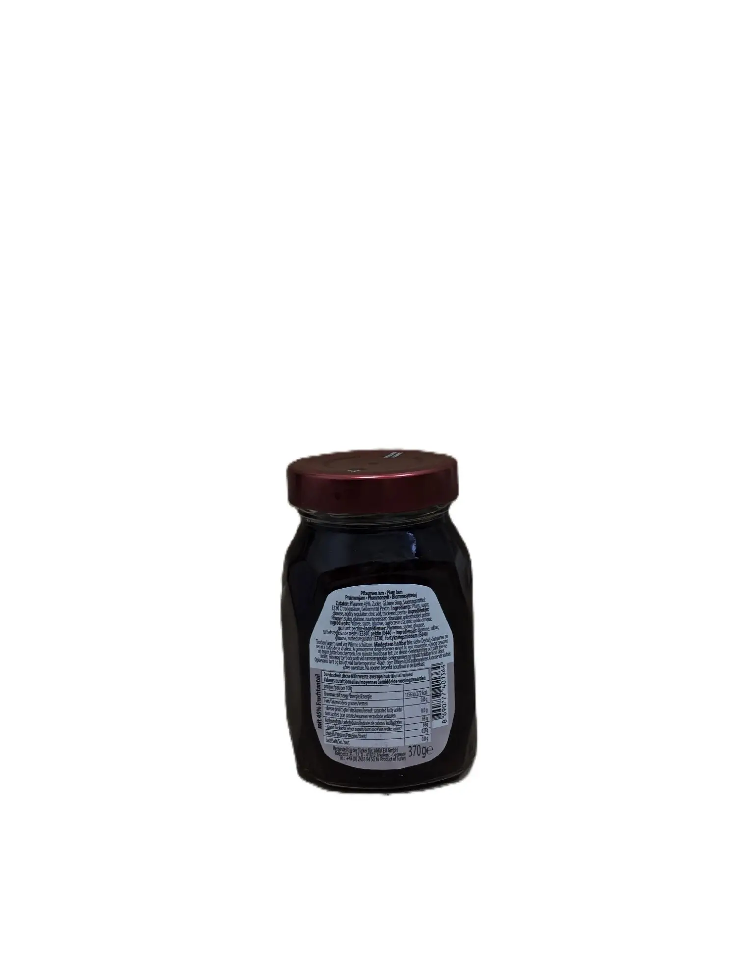 Pflaumen-Konfitüre (Fruchtaufstrich) im Glas, 370 g.