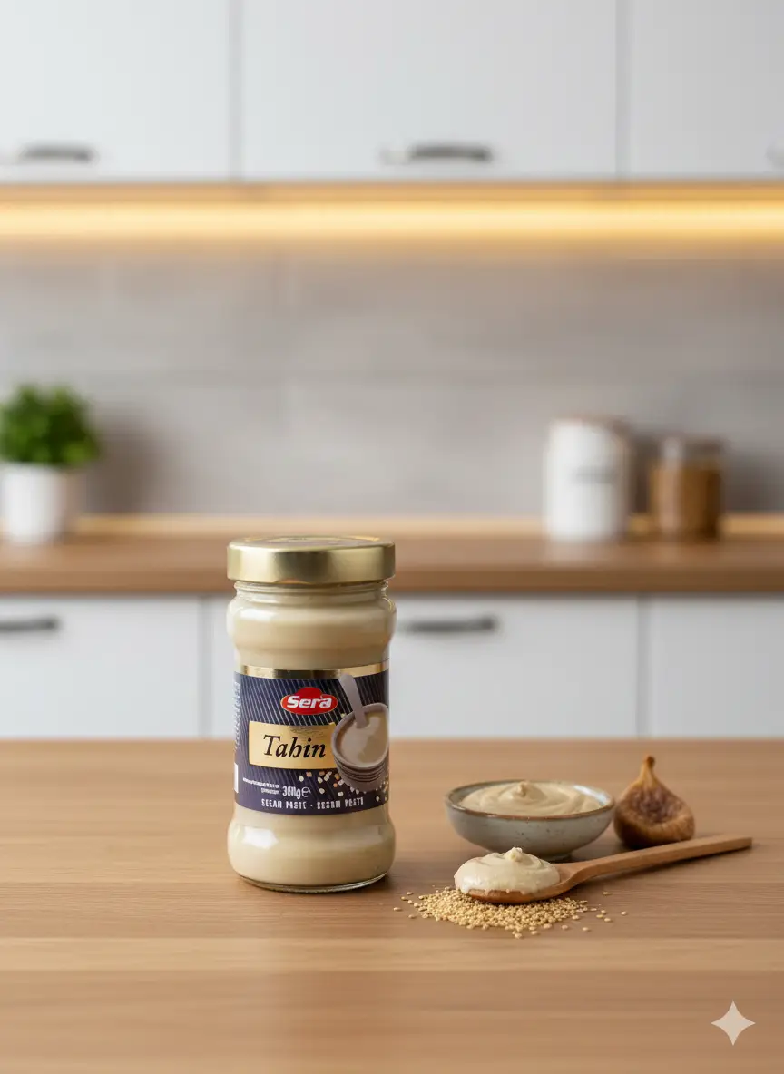 Sesampaste (Tahin) aus gemahlenen Sesamsamen. Inhalt: 300 g. Vielseitig für süße und herzhafte Rezepte geeignet.