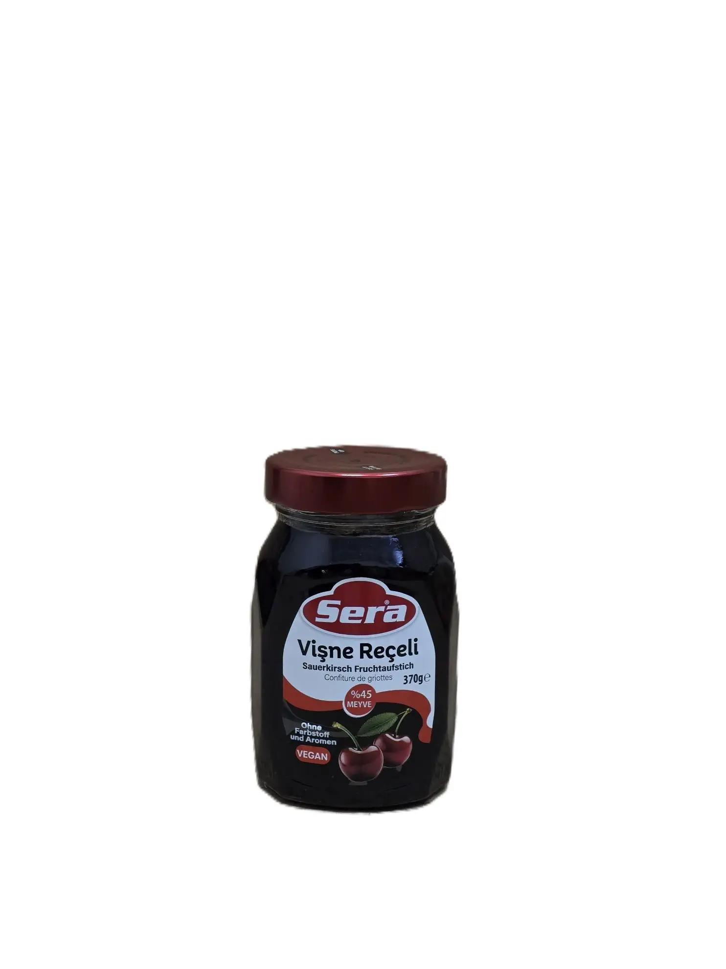 Sera Sauerkirsch Fruchtaufstrich 370g. Enthält 45% Fruchtanteil. Vegan, ohne Farb- und Aromastoffe. Ideal als Brotaufstrich oder zum Verfeinern von Desserts.