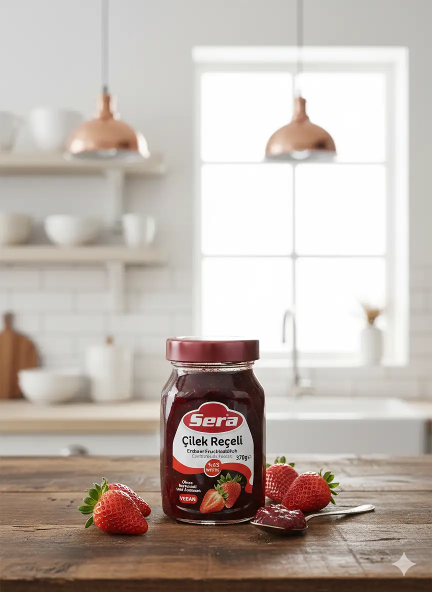 Erdbeer-Konfitüre (Fruchtaufstrich) im Glas, 370 g.