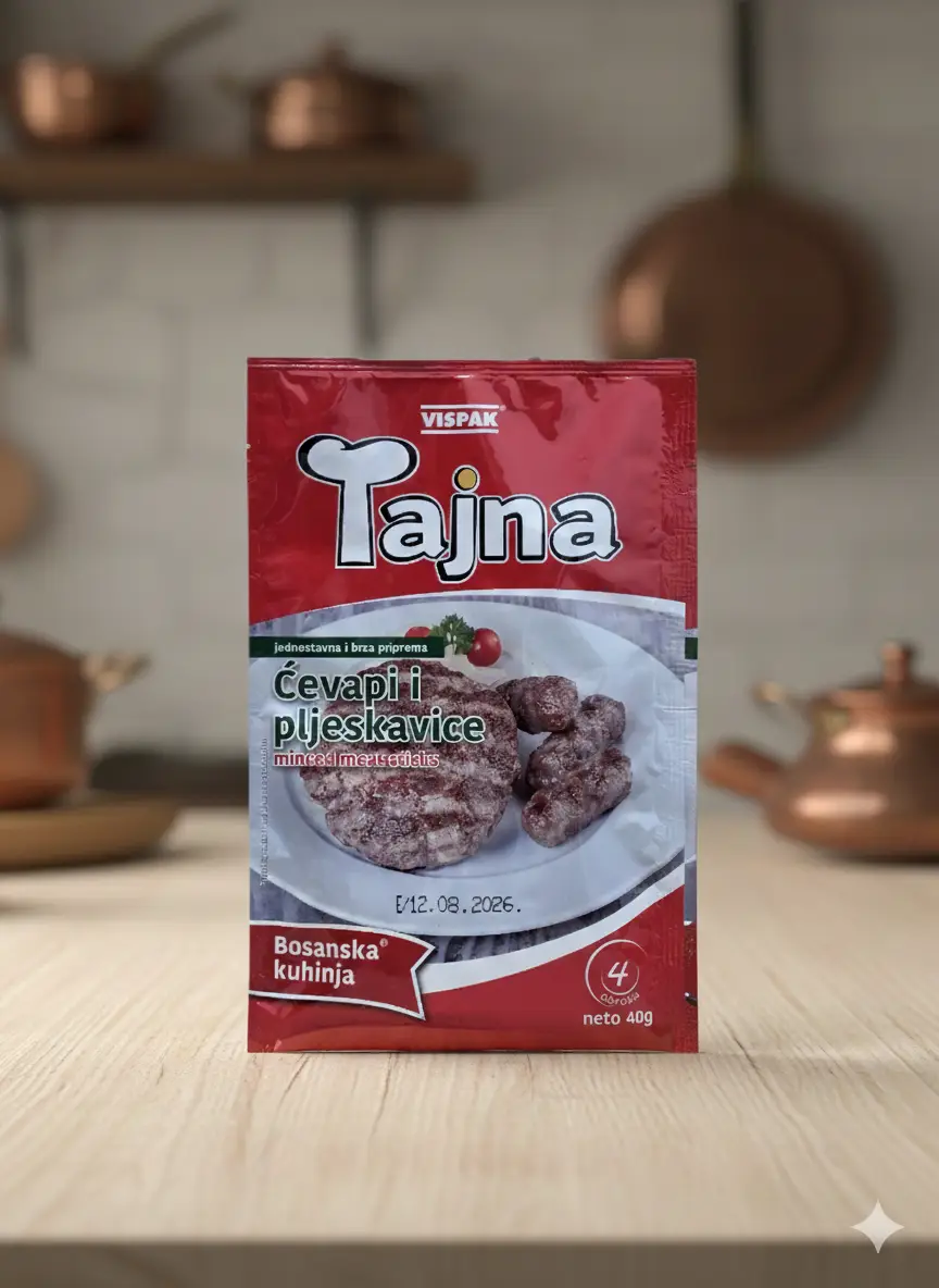 Vispak Ćevapi i Pljeskavice – Gewürzmischung für traditionelle bosnische Fleischgerichte wie Ćevapi und Pljeskavice. Inhalt: 40g.